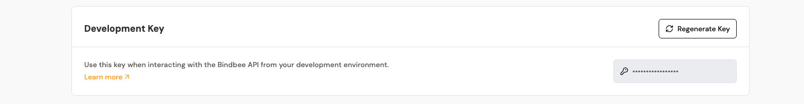 You can view and regenerate your Development API key in the API Keys section of your Bindbee dashboard.